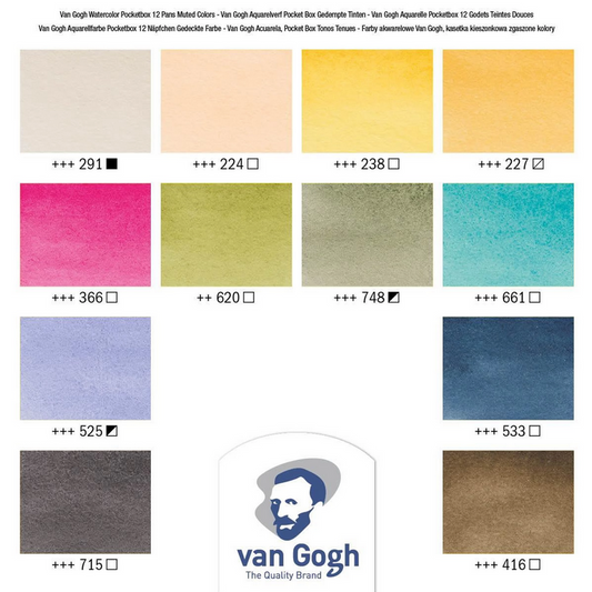 Van Gogh Akvarel pocketbox, Dæmpede farver, 12 farver+pensel