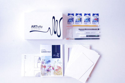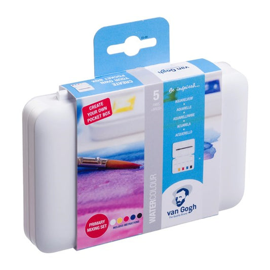 Van Gogh Akvarel pocketbox, med primærfarver, sort, hvid + 7 tomme pladser