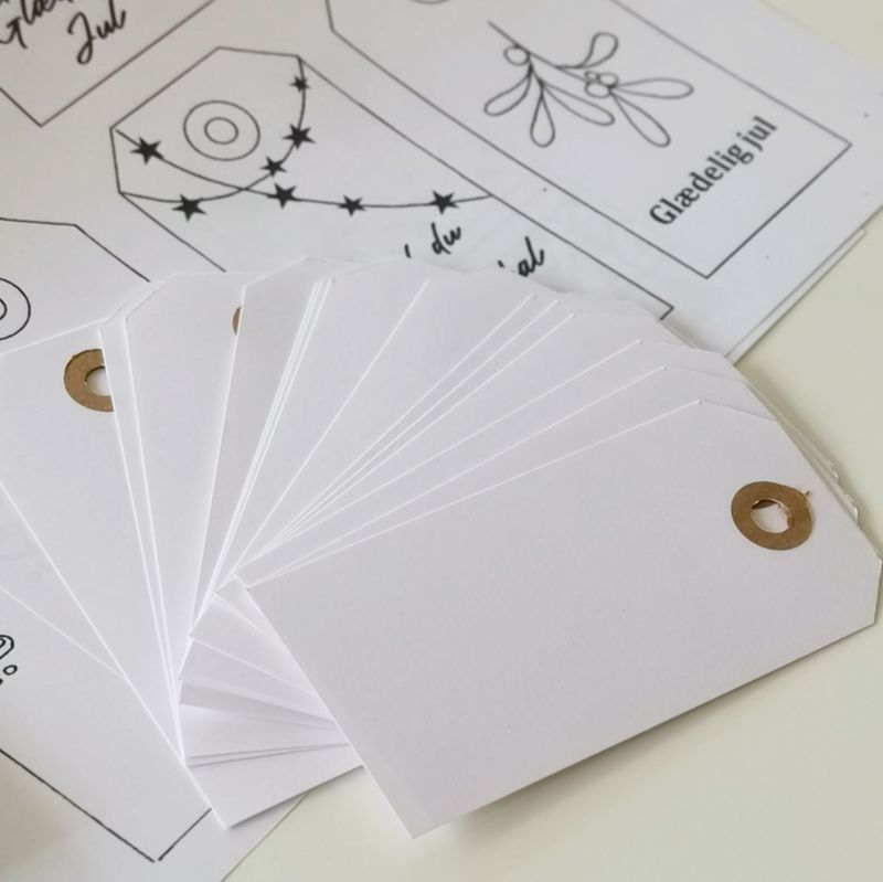 Dette er normale manilla mærker på normalt papir. Ønsker du du gavemærker på akvarelpapir kan du få dem her: Pakke med blanke akvarel gavemærker.