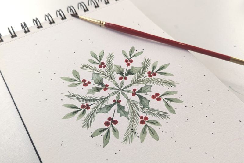 Lær at male et enkelt lille julesnefnug af blade med akvarel. Godt lille projekt for begyndere indenfor akvarel.